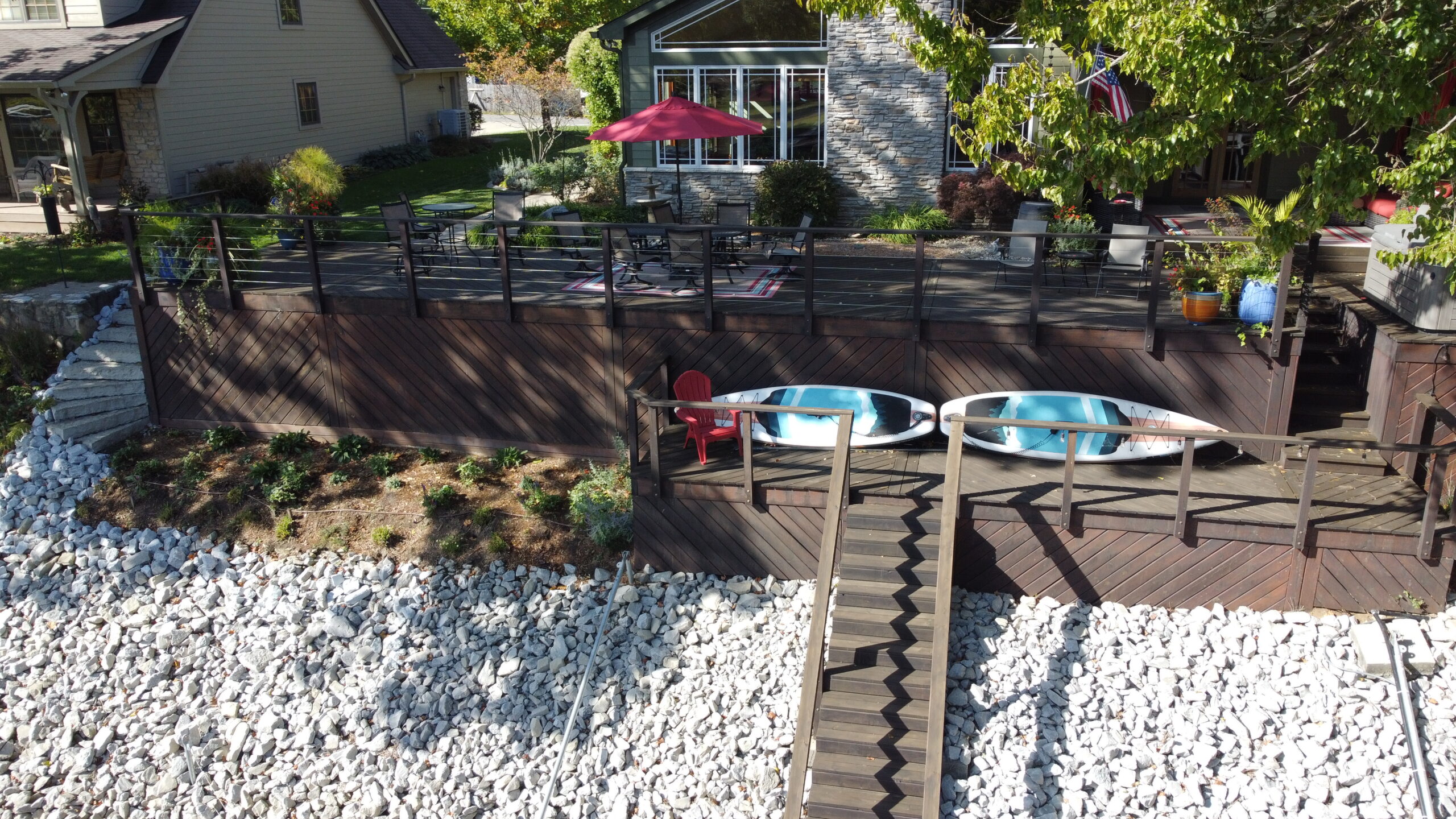 The details make the difference. Landscaping softens the structure of a deck and helps it blend seamlessly into its surroundings.