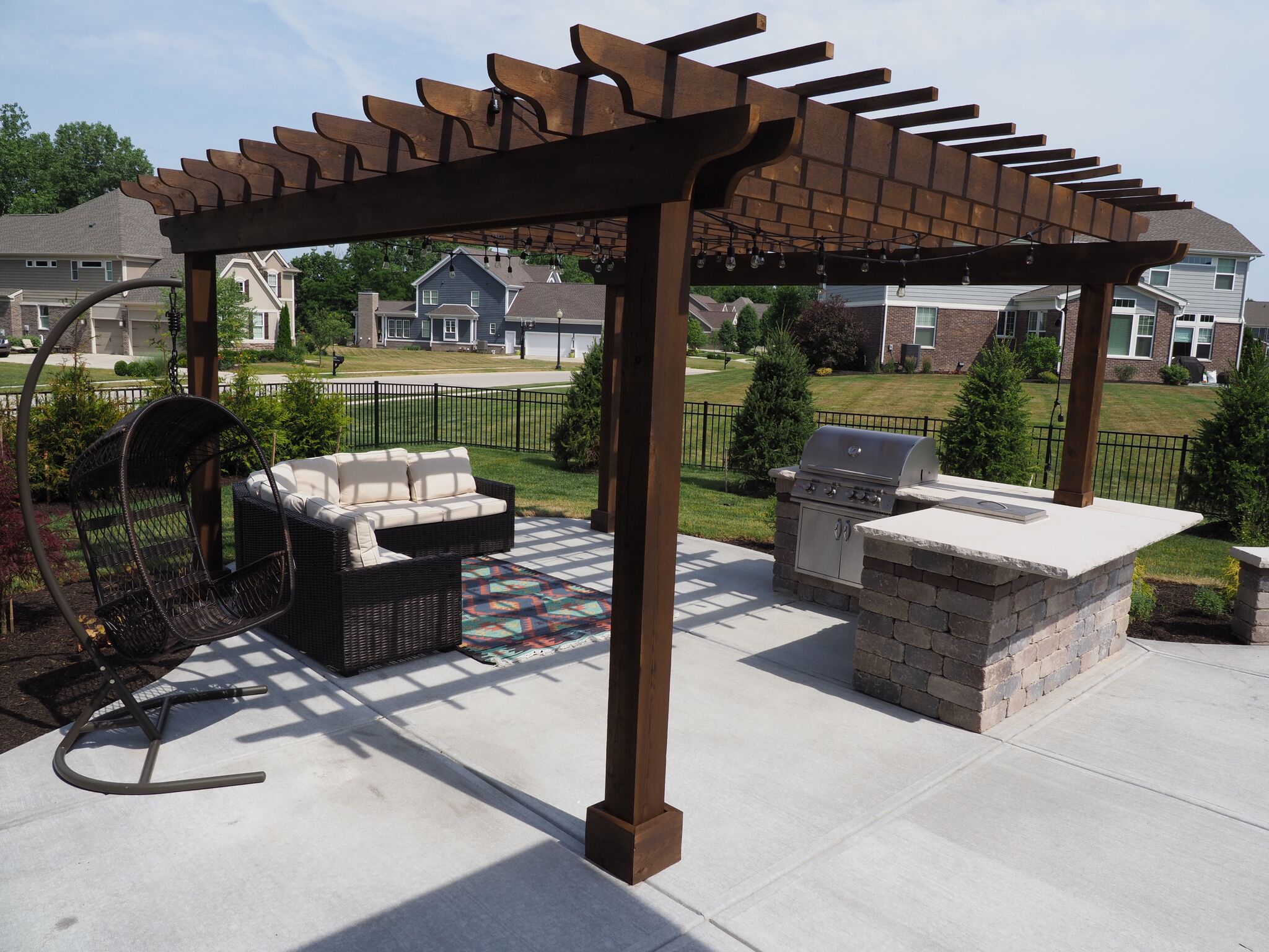 As your hardscape takes shape, adding vertical interest becomes both a functional and aesthetic game-changer. Custom pergolas in Indianapolis, IN, serve as the perfect architectural centerpiece, offering a sophisticated way to define your “outdoor room” while providing essential relief from the rising spring sun. When considering outdoor shade structures in Indiana, it is vital to select durable materials like cedar or high-quality vinyl that can withstand our state’s unpredictable humidity and sudden thunderstorms. To truly elevate a covered patio design, consider integrating dimmable bistro lighting or planting fast-growing climbing vines like clematis to soften the structure’s lines. A well-placed pergola transforms a flat yard into a multi-dimensional sanctuary built for both charm and longevity.